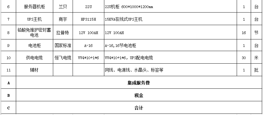 4、為保障服務(wù)器設(shè)備在斷電時(shí)不丟失業(yè)務(wù)數(shù)據(jù),需更換一套UPS設(shè)備,盡量延長(zhǎng)服務(wù)器的待機(jī)時(shí)間。(詳細(xì)清單附后)