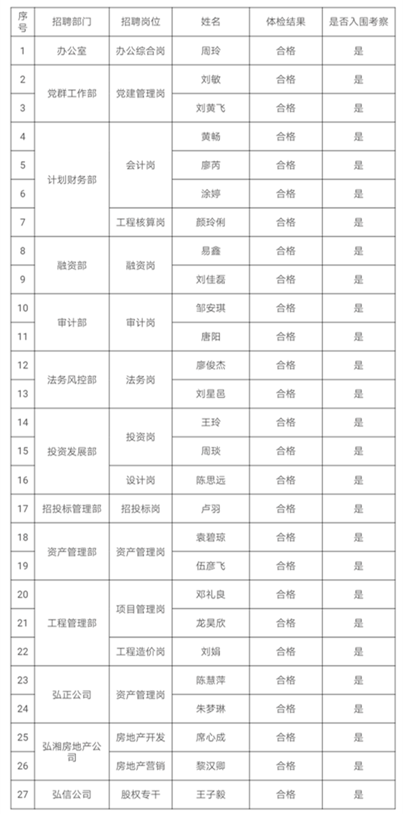 附件:衡陽弘湘國有投資(控股)集團(tuán)有限公司2020年公開招聘員工體檢結(jié)果及入圍考察人員公示