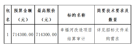 幸福河改造項(xiàng)目結(jié)算審計(jì)競(jìng)爭(zhēng)性磋商公告