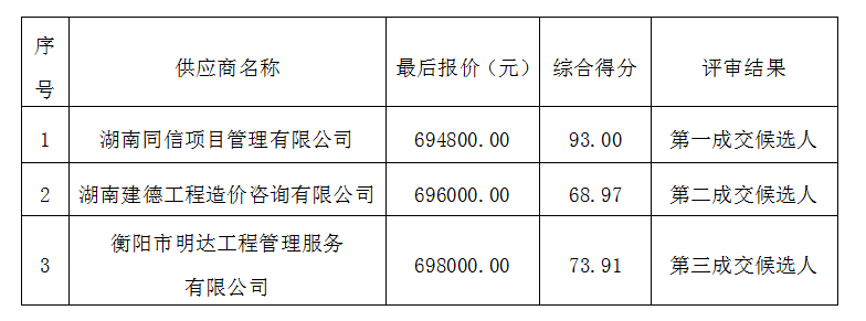 成交供應(yīng)商名稱:湖南同信項目管理有限公司