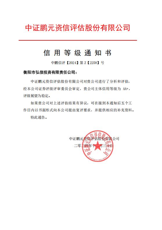 衡陽國資新增一家AA+信用等級(jí)企業(yè)