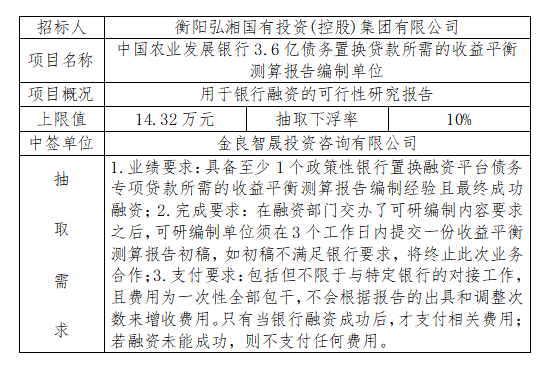 招 標 人:衡陽弘湘國有投資(控股)集團有限公司