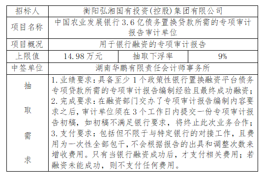 中國農(nóng)業(yè)發(fā)展銀行3.6億債務置換貸款所需的專項審計報告審計單位隨機抽取結(jié)果公示