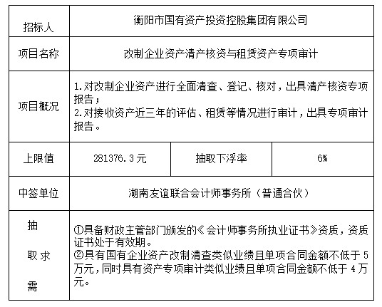 改制企業(yè)資產(chǎn)清產(chǎn)核資與租賃資產(chǎn)專(zhuān)項(xiàng)審計(jì)抽取結(jié)果公示