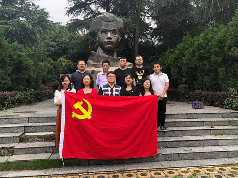 隨后黨員們在夏明翰雕像前重溫入黨誓詞,支部書記以“緬懷革命先烈,做堅定的馬克思主義踐行者”為題講黨課,他說:90年前,革命先烈夏明翰作為一個堅定的馬克思主義踐行者寫下“砍頭不要緊只要主義真”的就義詩,今天我們作為后來人,要在工作中生活中學習中不斷踐行。