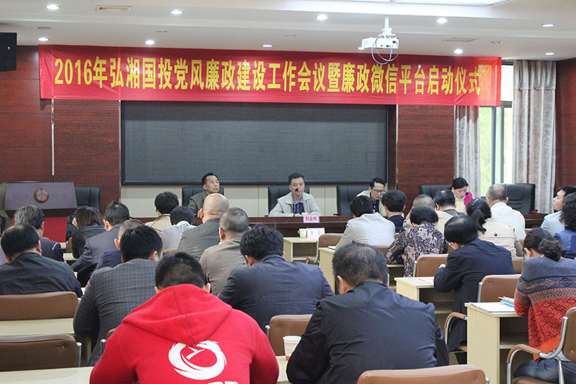 會(huì)上,各部室、各子公司主要負(fù)責(zé)人還分別向集團(tuán)公司黨組遞交了《弘湘國投集團(tuán)2016年度黨風(fēng)廉政建設(shè)和反腐敗工作任務(wù)責(zé)任書》,并舉行了“廉政弘湘 助力發(fā)展”微信平臺(tái)啟動(dòng)儀式。
